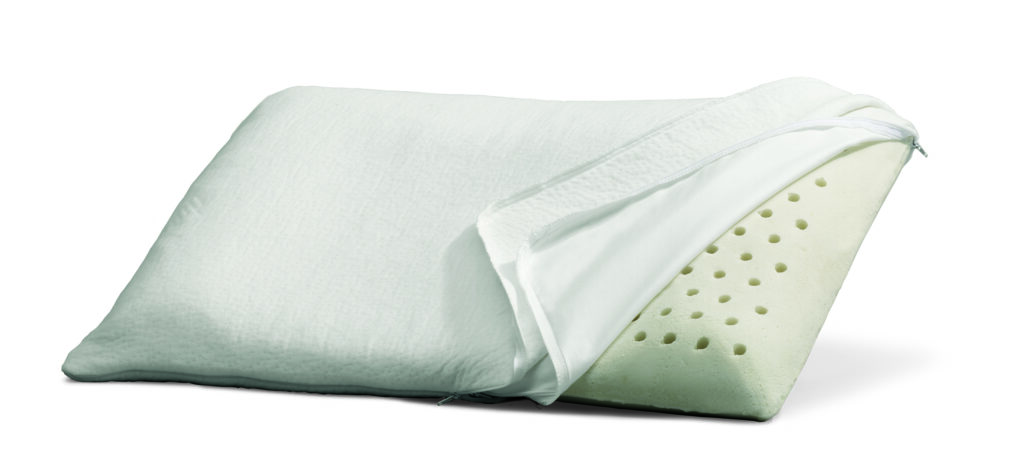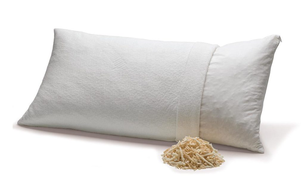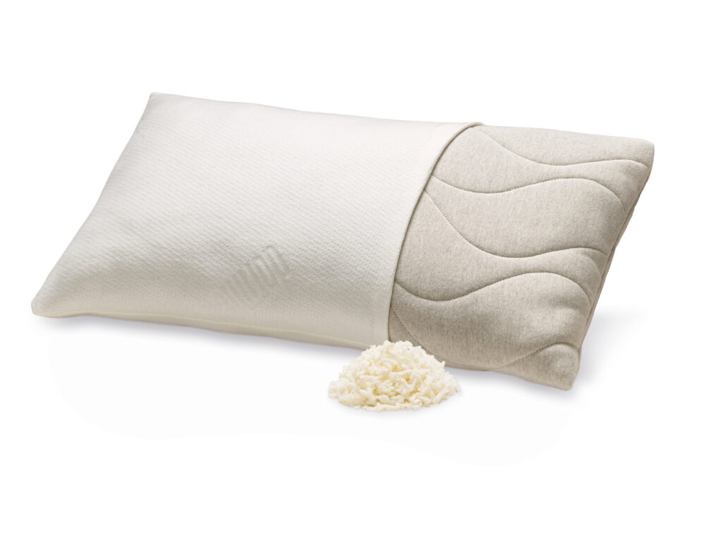 Das Kopfkissen „Zirbenpillo“ hat eine Füllung aus Naturlatex-Stäbchen (75%) und Zirben- Arvenflocken (25%).