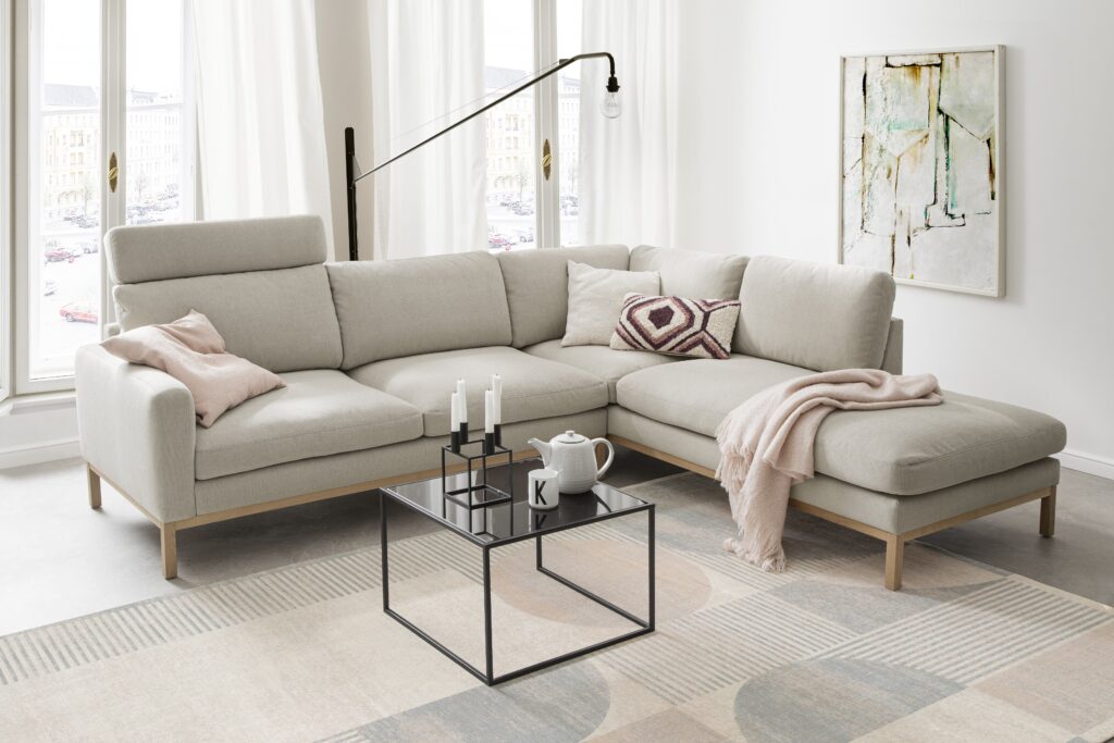 Sofa Modena, die moderne Interpretation des klassischen Sofas. Stilsicherheit durch klare, elegante Formen. Die zierliche Basis mit den elegenten Komfortpolstern begeistert durch ihre Gemütlichkeit. Natürlich können Sie Modena ist in vielen hochwertigen Stoffen und charakterstarken Ledern bestellen. So entsteht ein modernes Meisterstück und echtes Entspannungsmöbel. Alle Garnituren sind mit dem Emissionslabel und dem goldenen M ausgezeichnet. Kufe wahlweise chrom glanz oder schwarz matt erhältlich
