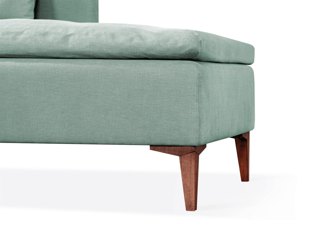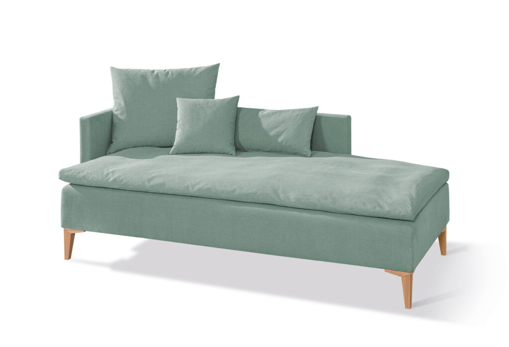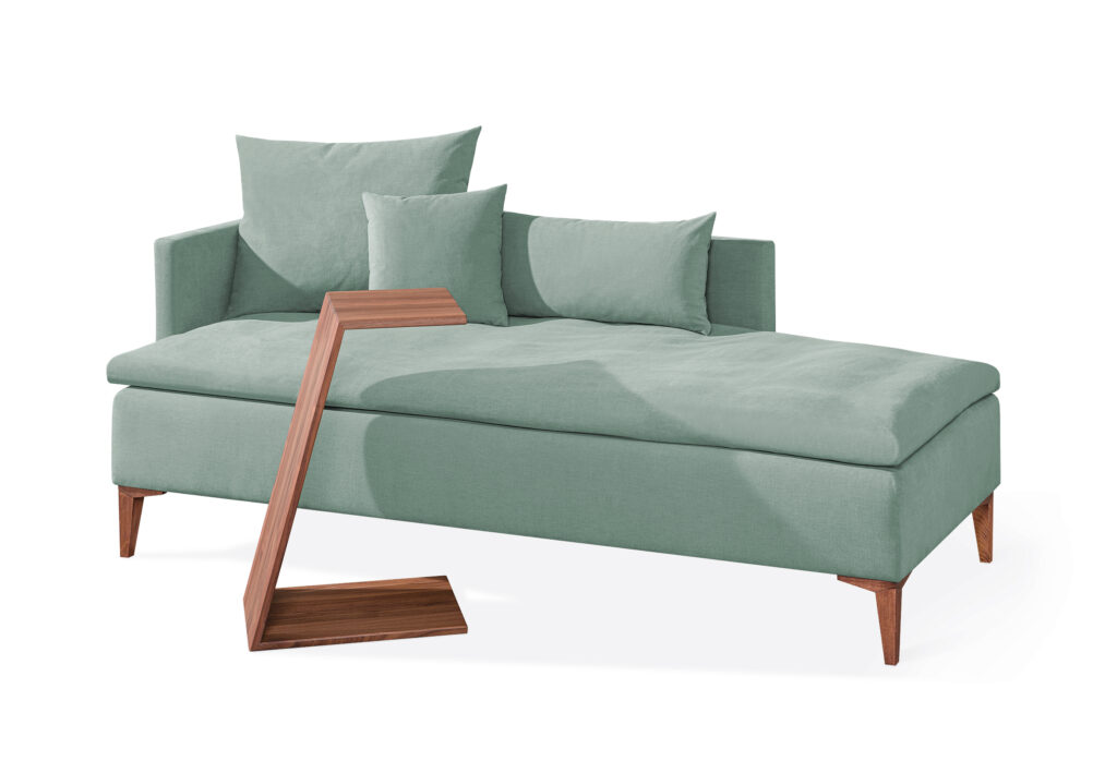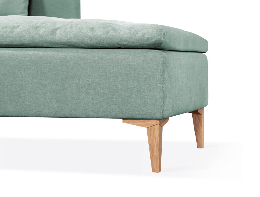 Das DAYBED eignet sich als perfekter Rückzugsort, als eleganter Treffpunkt für gesellige Stunden oder als willkommene Schlafgelegenheit für Gäste. Die Fichte für den Rahmen sowie das Buchen- und Eichenholz für die Füße stammen aus nachhaltiger Forstwirtschaft.