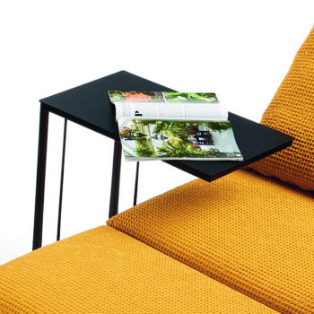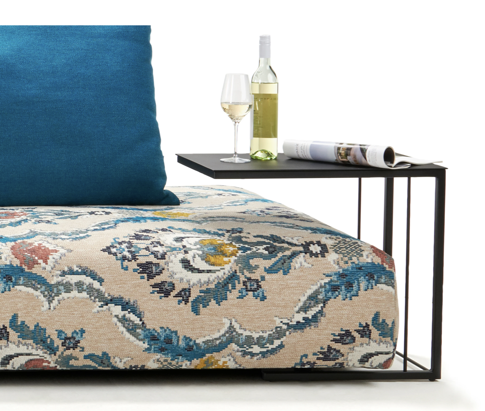 METAL SLIDING TABLE. EIN PRAKTISCHER BEISTELLTISCH, DER SICH DURCH EINFACHES UNTERSCHIEBEN IHREM SOFA ANPASST. DAS FILIGRANE UNTERGESTELL AUS METALL, SCHWARZ MATT FEINSTRUKTUR PULVERBESCHICHTET, GIBT DEM GANZEN EINEN LEICHTEN LOOK. GENIEßEN SIE DEN KOMFORT VON SCOOP. ALS UNIKAT GEFERTIGT.